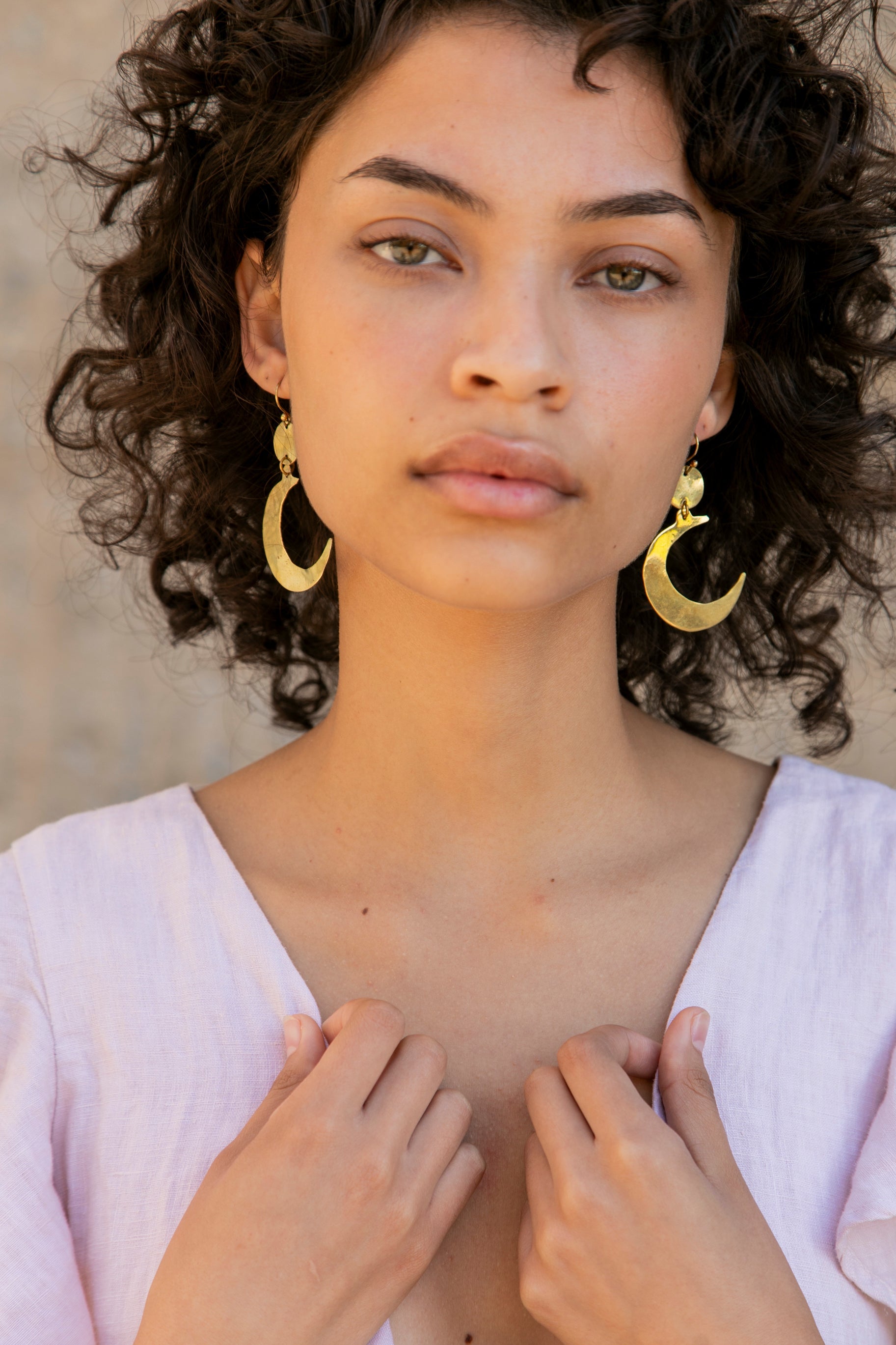 Handmade recycled solid brass earrings, made by our artisans in Kenya.