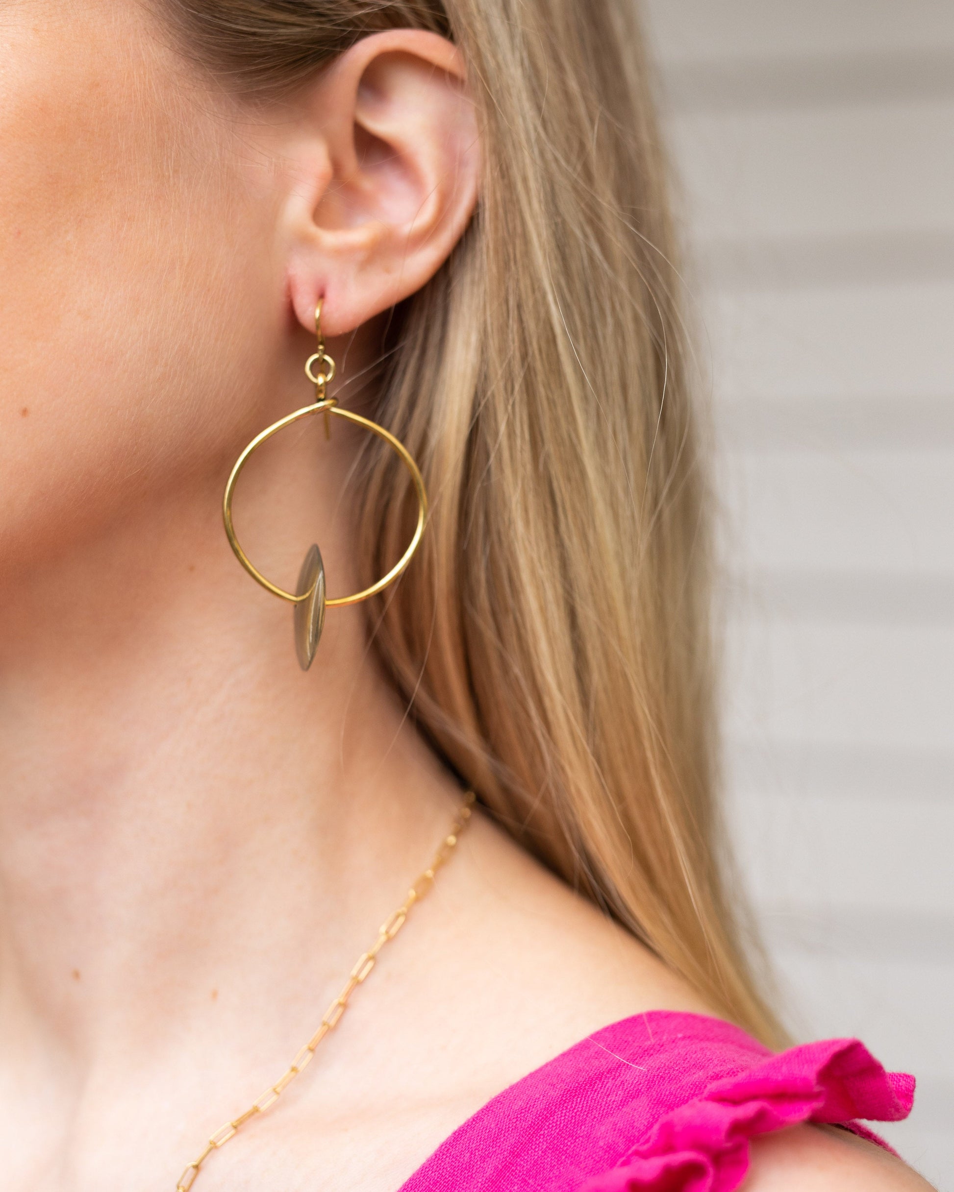 Recycled 100% brass earrings with sustainably sourced cow horn discs. The colour of the horn can vary from brown through to black.
