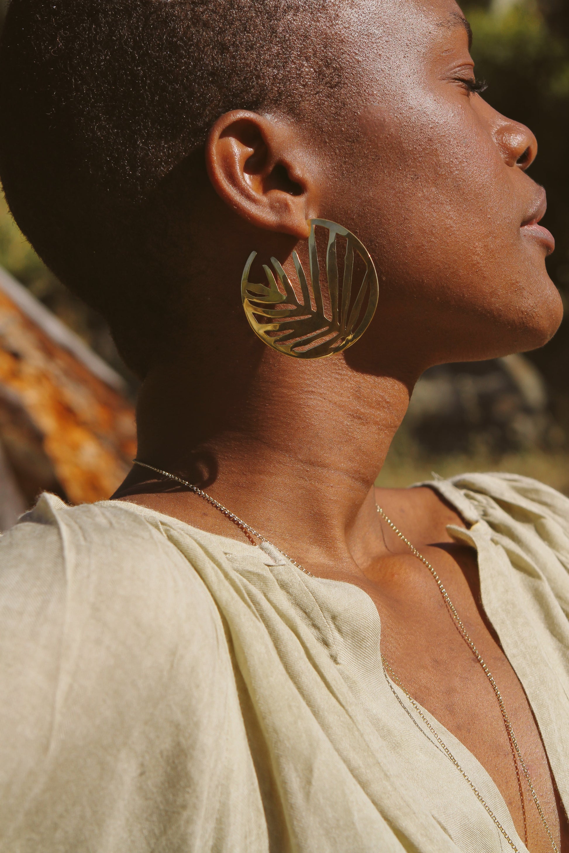Handmade recycled solid brass earrings, intricately hand-cut and made by our artisans in Kenya.