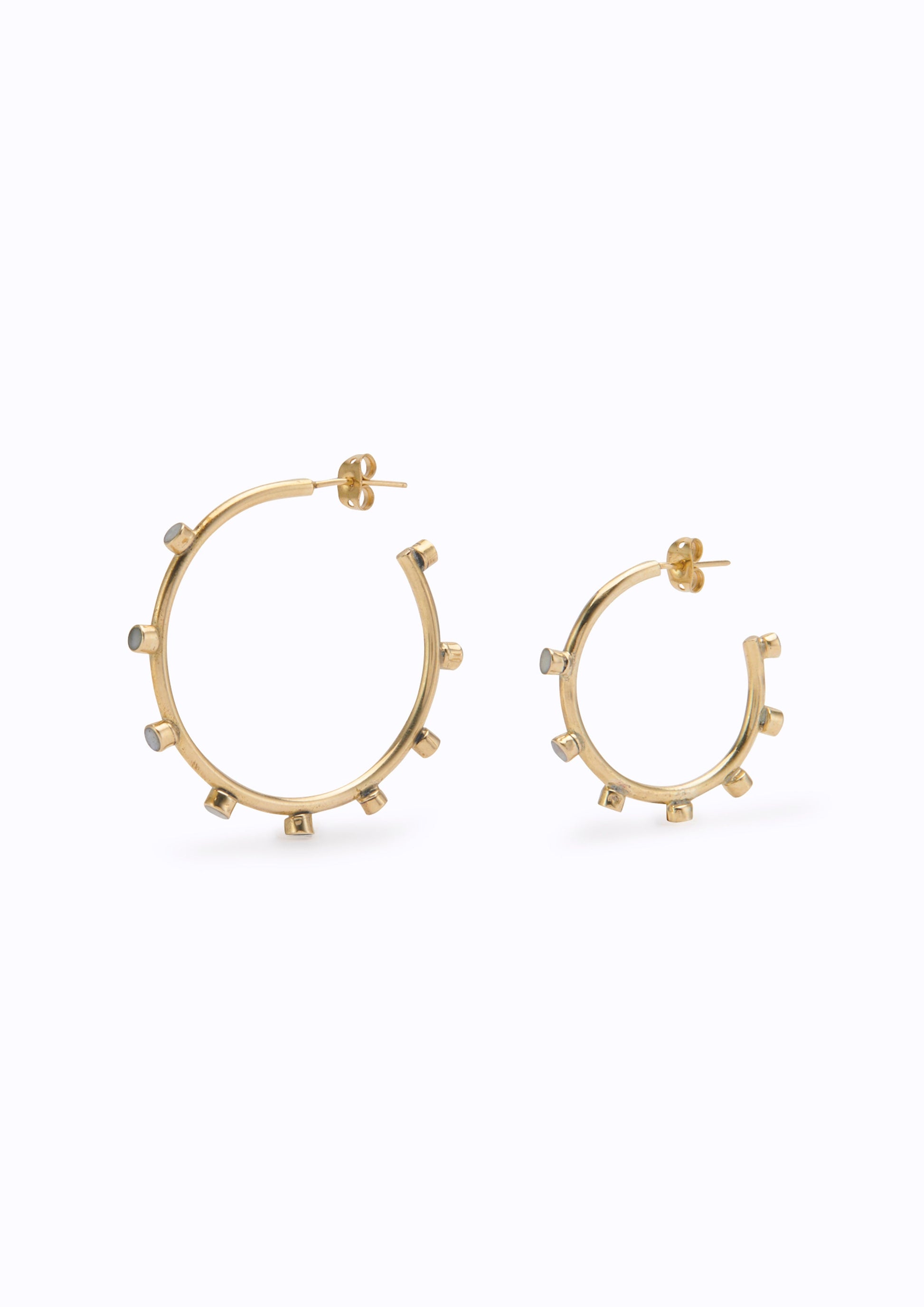 Small is 25mm diameter and Large is 40mm diameter, with butterfly earring fitting.